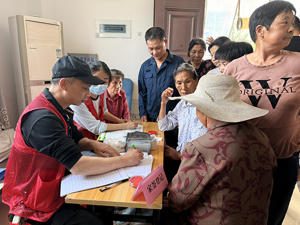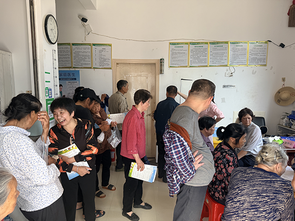 活动现场,几张临时搭建的诊疗桌整齐排列,血压计、血糖仪、B超机等便携式医疗设备一应俱全,工作人员分工明确,引导村民有序排队、登记信息、签约家庭医生。登记签约结束后,免费体检环节随即展开,身高体重测量、血压血糖检测、B超、心电图等多项基础体检项目同步进行,重点聚焦65周岁及以上老年人,精准开展高血压、糖尿病等慢性病筛查,让老年群体在家门口就能享受规范、全面的健康筛查服务。“我年纪大了,腿脚不方便,去市区体检要折腾大半天,今天在家门口就能做完全套检查,还不用花一分钱,太感谢你们了。”刚完成血糖检测的陈阿姨拉着工作人员的手说道。