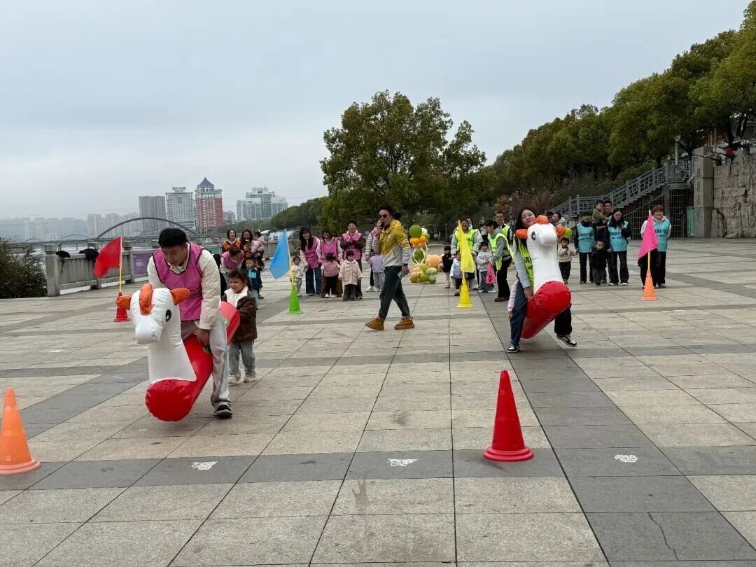 随后的亲子趣味游戏将活动推向高潮。“小马快跑·亲子协力赛”中,家长骑坐充气小马,孩子在后助力,双方默契配合保持平衡,协力向前。在“篮球竞技·亲子接力赛”中,亲子搭档运球、传递、投篮,奋勇争先,配合默契,赢得阵阵喝彩。现场最终评出各类奖项,孩子们在欢声笑语中锻炼了身体,也体会到团队合作的力量。