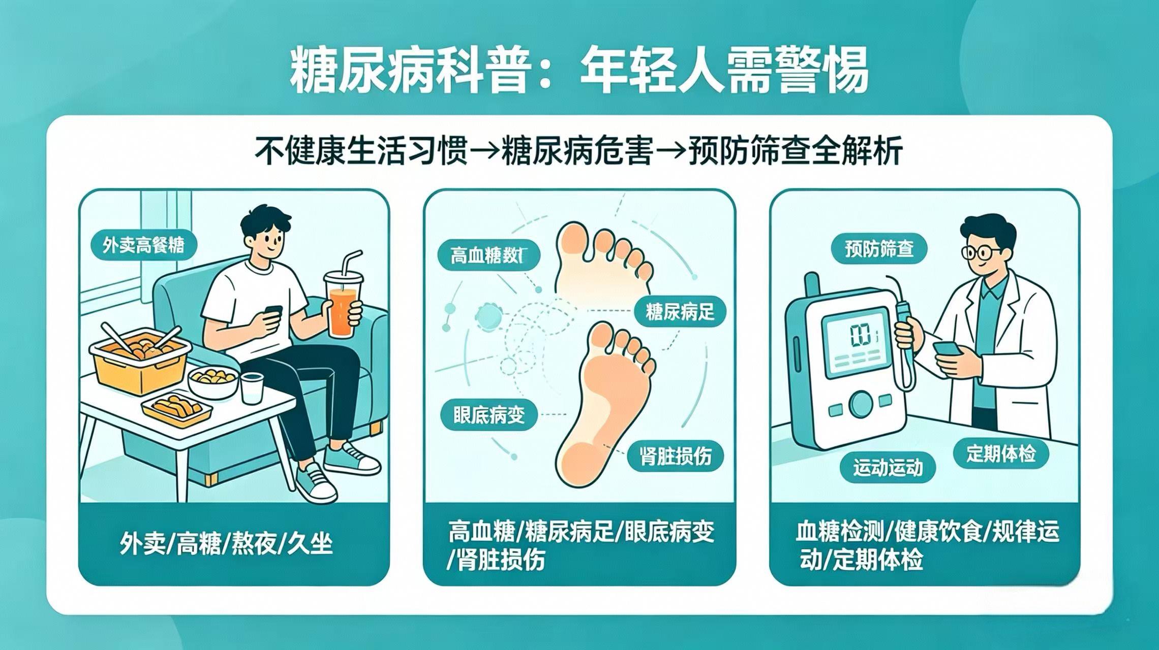 宁德市医院内分泌科副主任医师施丽丹表示,糖尿病典型症状主要为多饮,怎么喝水都渴,夜里要爬起来喝好几次;多尿,尿量明显增多,夜尿频繁;多食,刚吃完又饿,食欲异常亢进;体重下降,明明吃得多,人却越来越瘦。糖尿病不典型症状(更容易被忽视)表现在总觉得累、乏力;视力模糊;皮肤瘙痒、反复长疖子或伤口不易愈合;反复尿路感染或女性外阴瘙痒;手脚发麻,像戴了手套袜子。 根据目前国内外糖尿病筛查指南,建议筛查年龄通常为35岁及以上。不在筛查范围,不代表不会得病。年轻患者如果没有明显症状,几乎没有机会被主动发现。但比“漏诊”更可怕的,是他们自己根本不在意。然而,疾病,从不遵守年龄红线。 施丽丹说,其实,筛查很简单,不贵,也不费时。你不需要专门去大医院挂号排队。任何一家社区诊所、药店,甚至义诊现场,都可以测末梢血糖。扎一下手指,几分钟内就能初步判断血糖是正常、是偏高、还是危险值,如果异常,再去医院做进一步检查。最后,请记住三句话:别再把“年轻”当挥霍健康的许可证;多饮、多尿、体重下降、乏力、视力模糊……这些信号出现时,不要硬扛,不要窃喜;你的身体不会因为你年轻就网开一面。但也正因为年轻,现在改变,一切都还来得及。 |