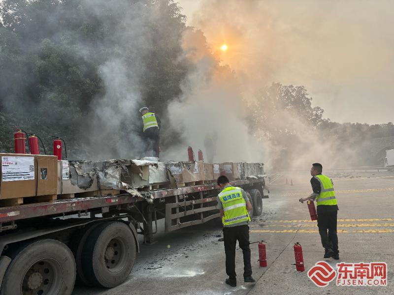 多方联动协同灭火。省高速集团宁德公司供图 “先控火、再隔离,人不能乱!”接到求助后,当班班长李庆情第一时间组织当班人员赶赴现场,对周边车道进行安全布控,并使用干粉灭火器对起火货物实施近距离压制,持续开展灭火作业。驻站干部张冯同步到场指挥,迅速联系属地消防部门协同处置,并组织后勤人员增援,疏导过往车辆有序绕行,防止因滞留、围观引发次生事故。