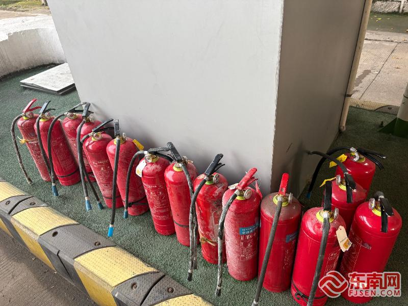 收费站所耗费的15个灭火器。省高速集团宁德公司供图 “火一压下去又复燃,只能一轮一轮顶上。”班长李庆情回忆道。由于起火货物堆积密实,明火虽被多次扑灭,内部却持续阴燃,火焰一次次卷土重来。现场人员轮番上阵,采取“压制—复燃—再压制”的方式,逐步推进灭火处置。经过近3个小时连续奋战,火情被彻底扑灭,货车车身及大部分货物得以保全,最大限度降低群众财产损失。