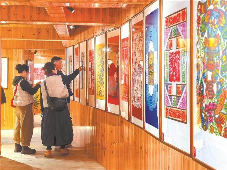 群众参观“格物致美·生肖万象”第四届窗花创意精品展作品。刘源 摄 如今,这些精神正持续在柘荣大地发光——“中华巧女”袁秀莹老人以剪刀红纸为媒,赓续柘荣剪纸技艺,让非遗薪火代代相传;田间地头上,种植能手郑爱兰悉心为前来学习的农业企业、家庭农场传授黄精、岗梅、大蓟等中药材种植经验;僧服车间里,僧服传统制作技艺代表性传承人林穗凤以针线为笔、以匠心为魂,将柘荣人精益求精的执着传递给一代代徒弟,让柘荣僧服走向更广阔的世界……