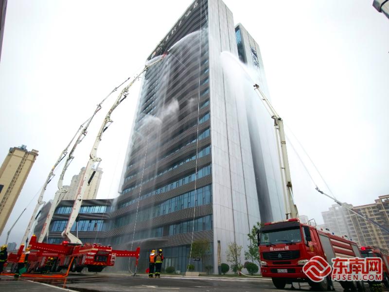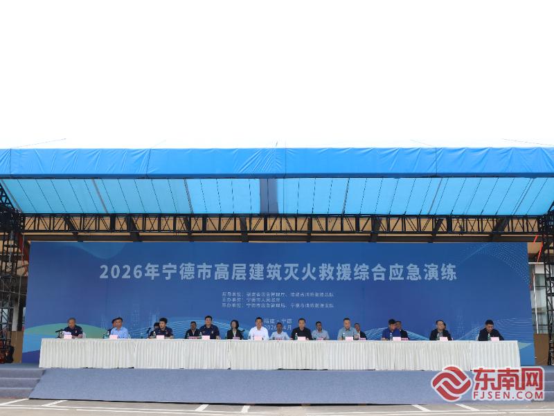 宁德市开展高层建筑灭火救援综合应急演练现场。吴舒珊 供图 此次演练由宁德市人民政府主办,市应急管理局、市消防救援支队承办,演练以“复杂灾情、多点联动、实战实战”为核心,联动多部门、覆盖多场景同步推进,全面检验应急处置实战效能。