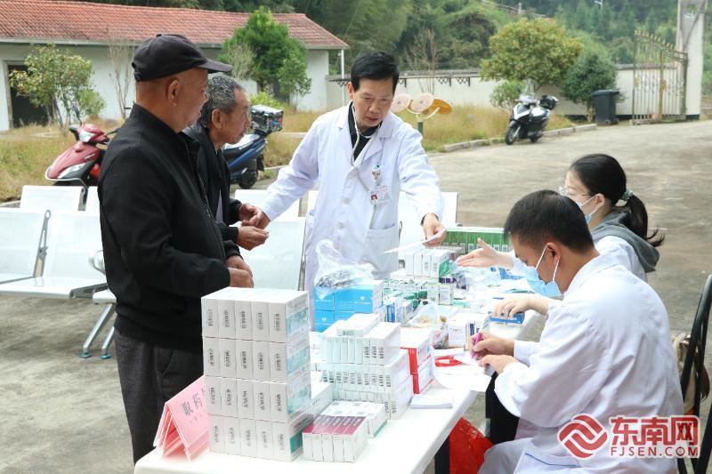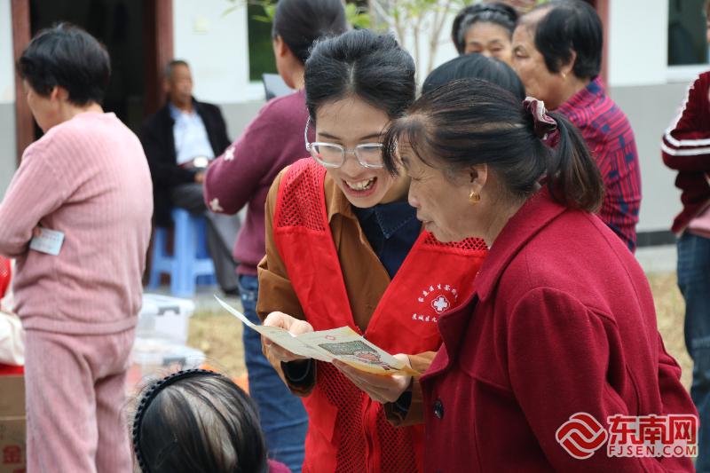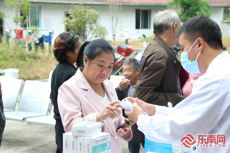 指导群众用药。东南网记者 周涛 摄 “这次活动真是太好了!我们这些老年人,去城里看病排队太麻烦,现在医生们直接到村里来,给我们做了好多检查,还开了药,现场就能领到免费的药,真是太方便了!而且,还能和村里的老伙伴们一起看医生学急救知识。”村民林大叔说。