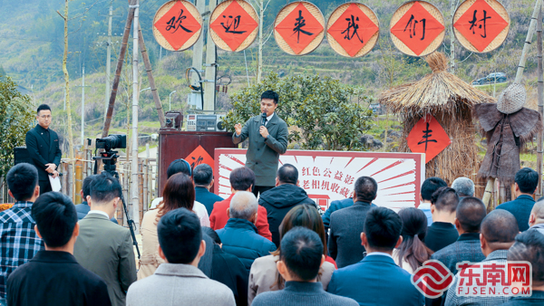 图为活动现场红色公益影院创办人刘圣辉介绍开设影院初衷。阮卡 摄 “我们村曾是革命根据地,无数先辈在这里前仆后继,留下了深沉的足迹,设立红色公益影院就是为了更好地弘扬红色文化。”红色公益影院创办人刘圣辉表示,希望红色公益影院与老相机收藏馆的设立能够将红色文化、红色精神、党的光辉历史代代传承,让群众在红色文化的氛围中喜迎建党100周年。 |