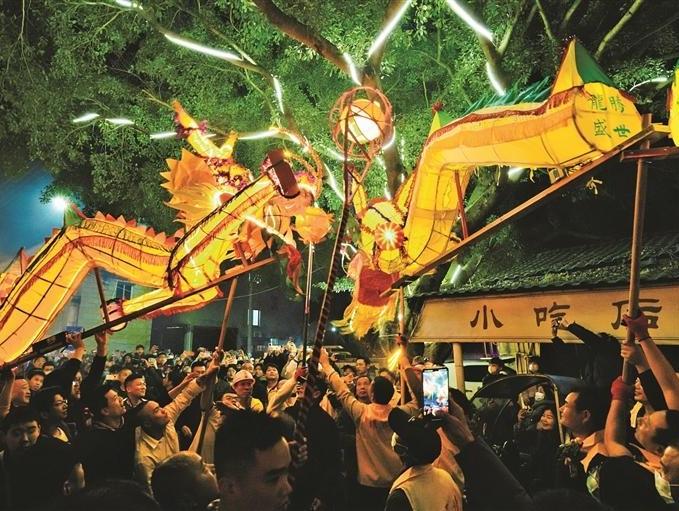 元宵灯火耀山海 非遗龙舞闹新春
